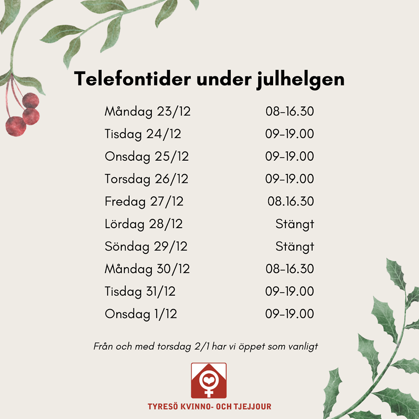 Tyresö kvinno- och tjejjour önskar alla en god jul och ett gott nytt år!
